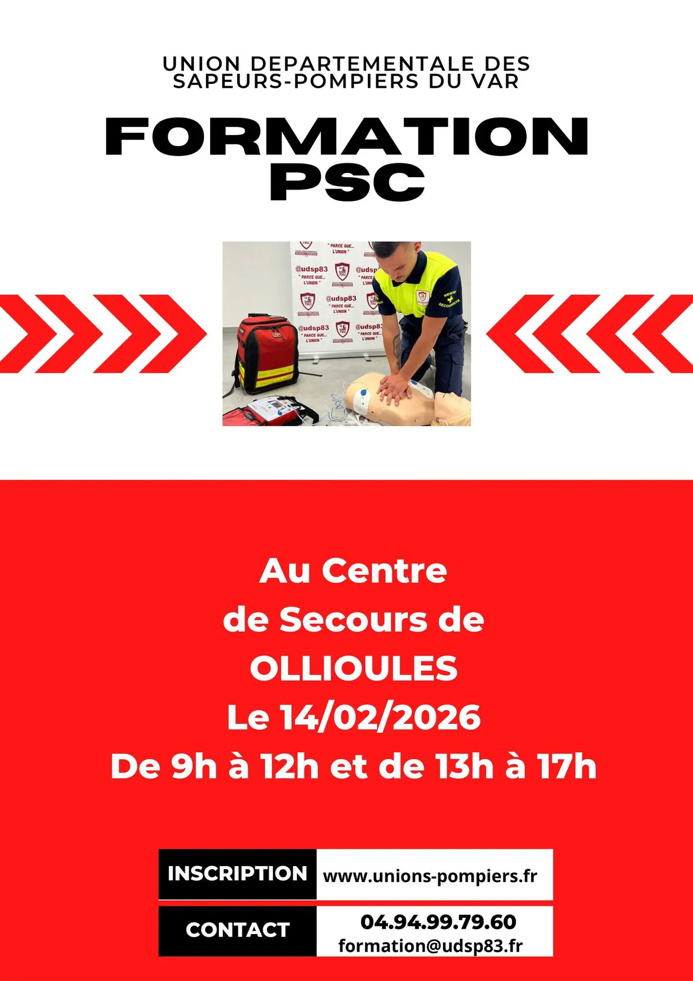 The Union Départementale des Sapeurs-Pompiers du Var (UDSP 83) offers a PSC (formerly PSC1) training course to help you learn lifesaving techniques.