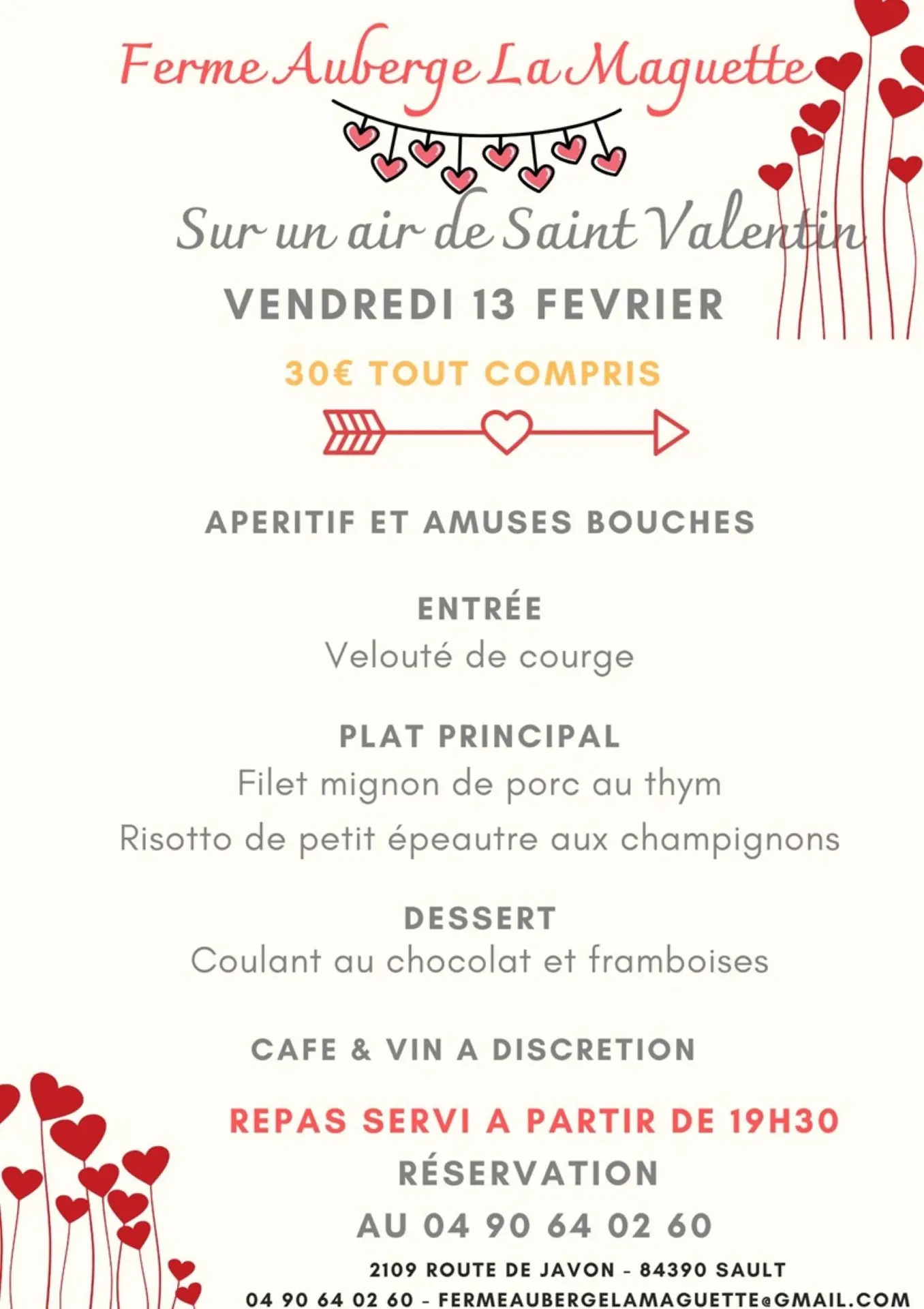 Repas de la Saint Valentin à la Ferme Auberge la Maguette