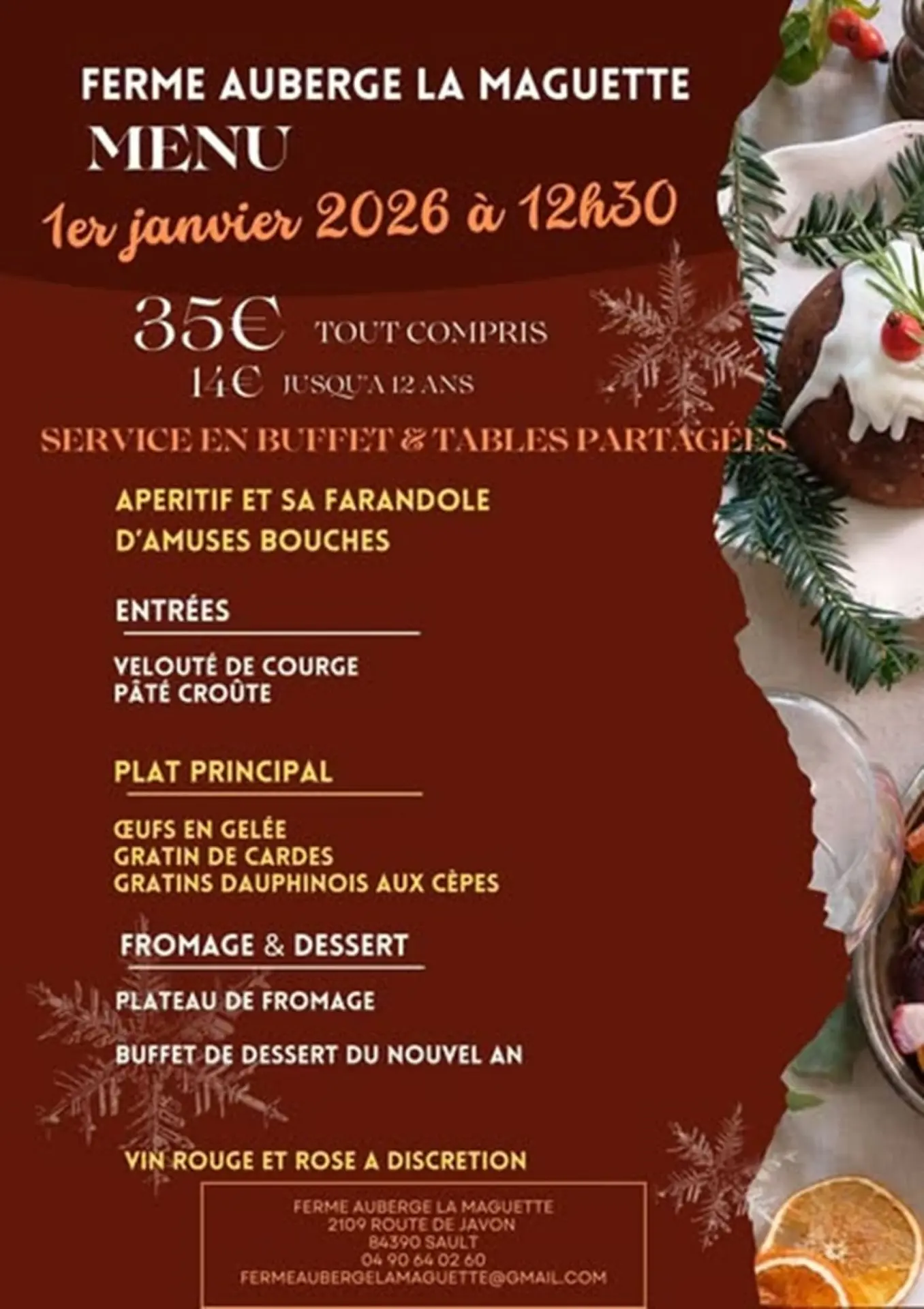 Repas du nouvel an à La Ferme Auberge la Maguette