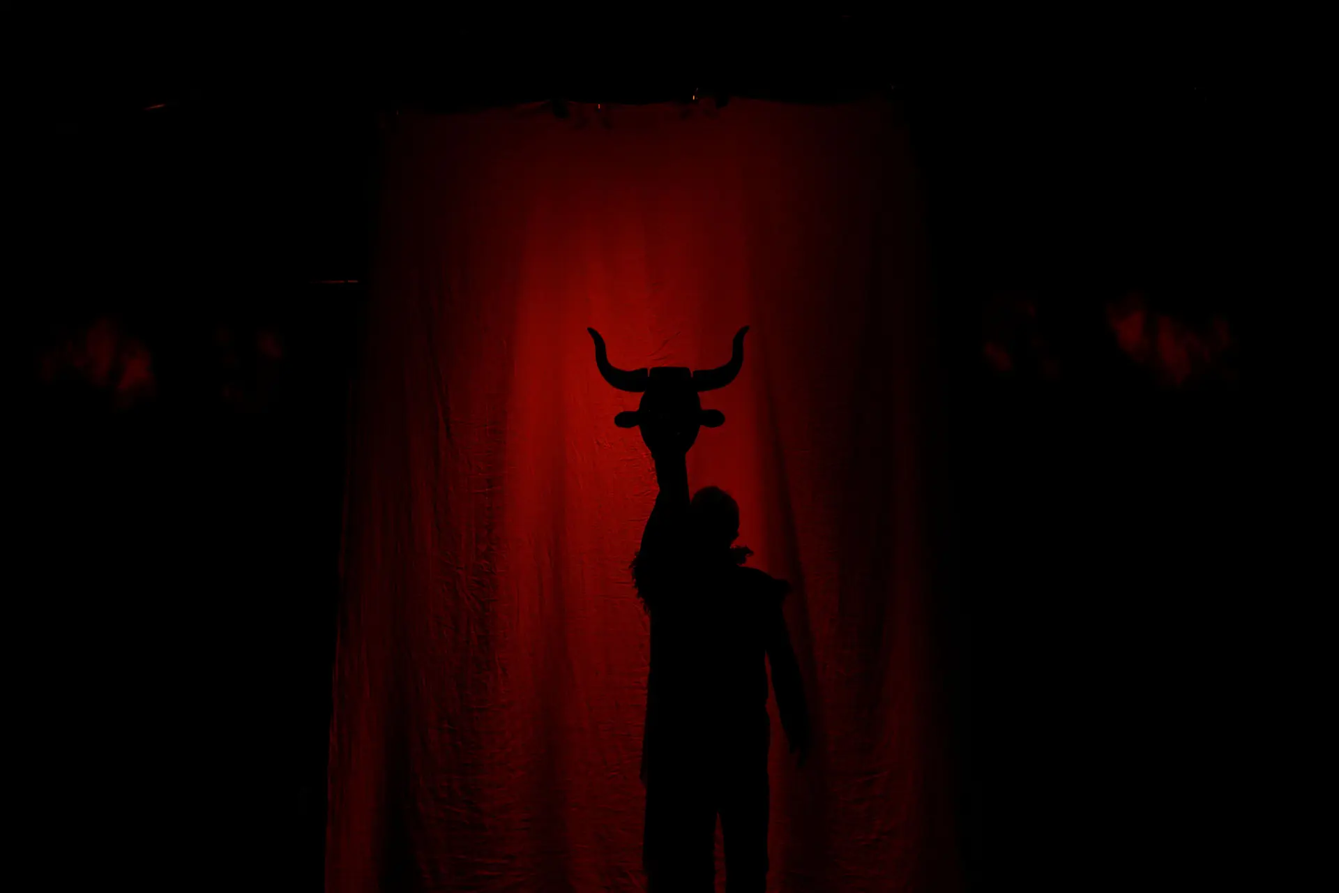 Mythos takes us into a dreamlike world of puppets, video projections and shadow theater. This utterly poetic show blurs the boundaries of reality and plunges us into an impressive phantasmagorical universe.