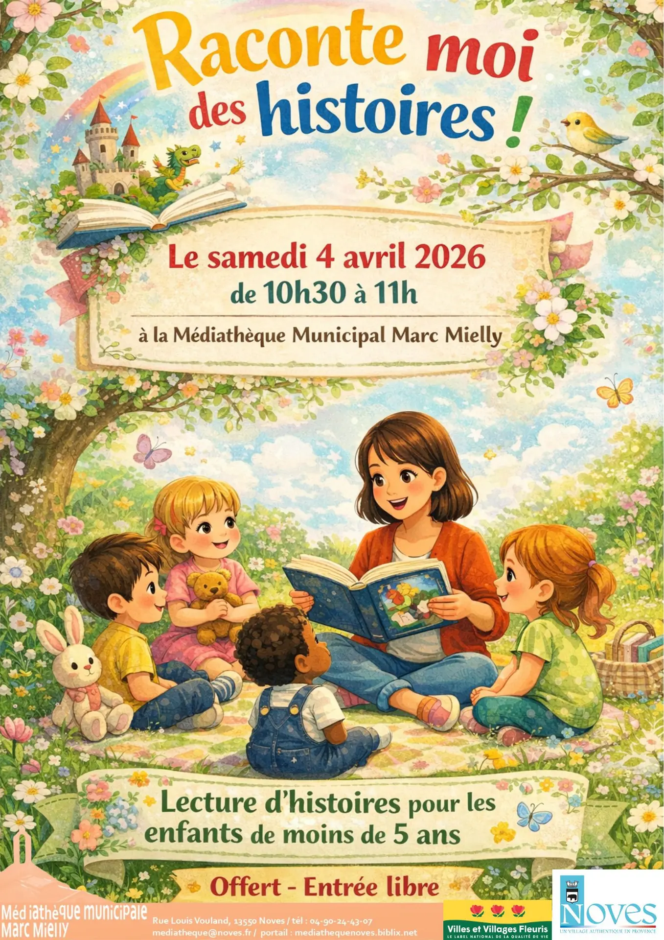 Raconte moi des histoires, organized by the Médiathèque Municipale Marc Mielly.