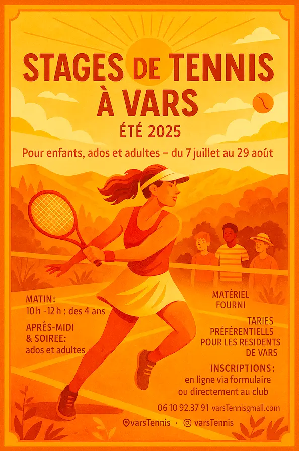 Throughout the summer, the Vars tennis school offers courses for children aged 4 and over, adult courses, private lessons and events open to all.