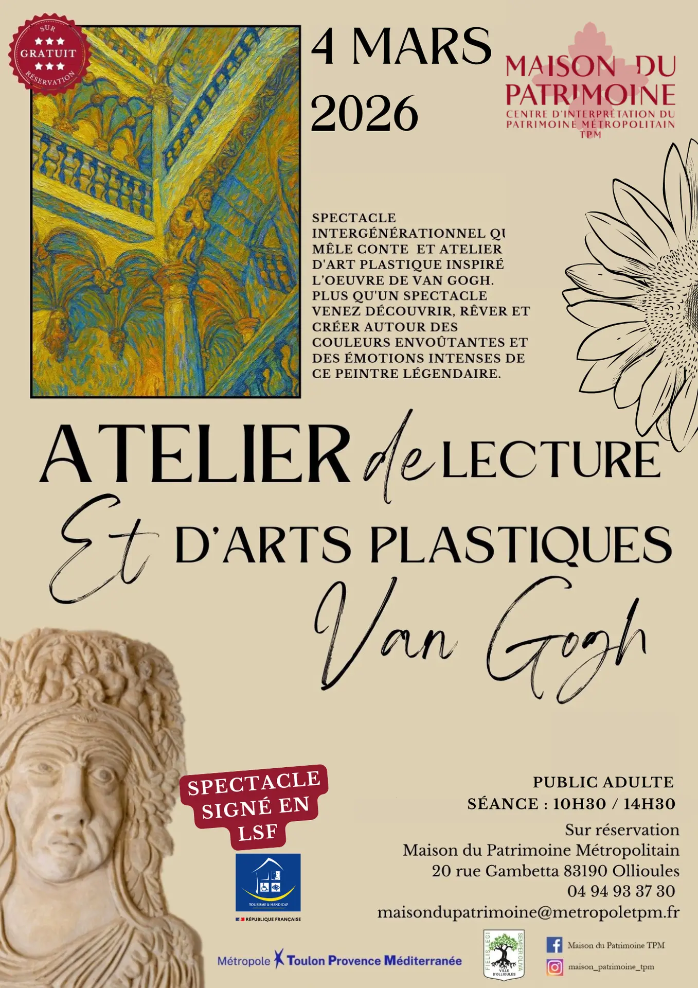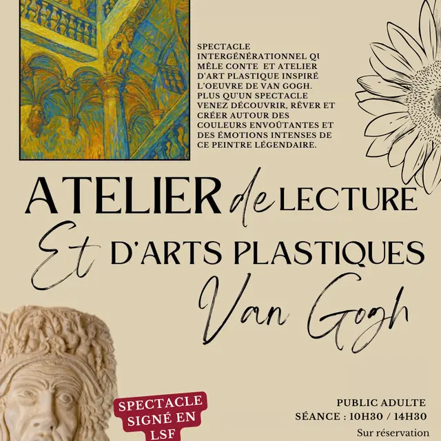 A visual arts workshop inspired by the colorful, poetic world of Van Gogh, and an intergenerational show combining storytelling and art, also signed in French sign language.
