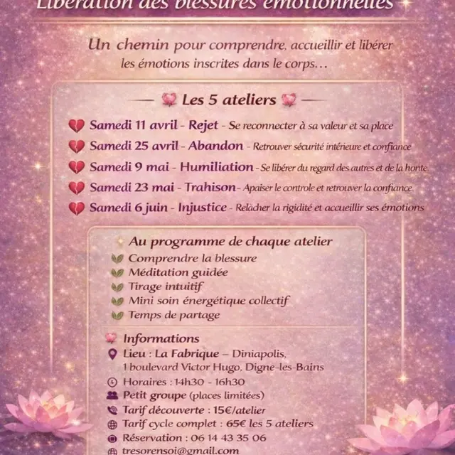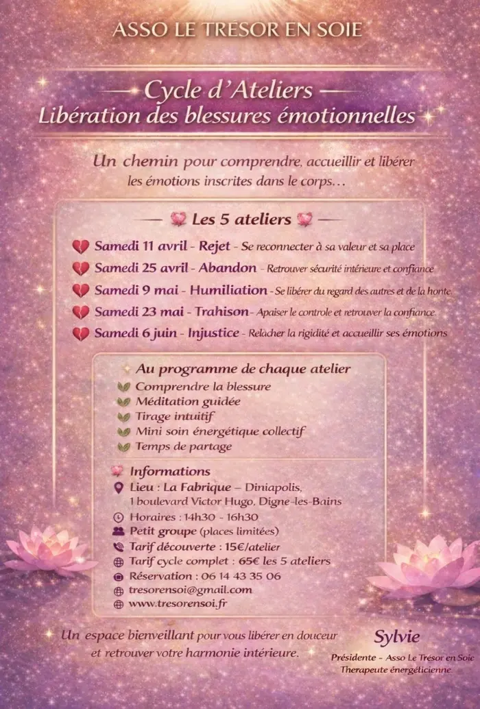 The Trésor en Soie association offers several workshops to work on your emotional wounds of the past or present.