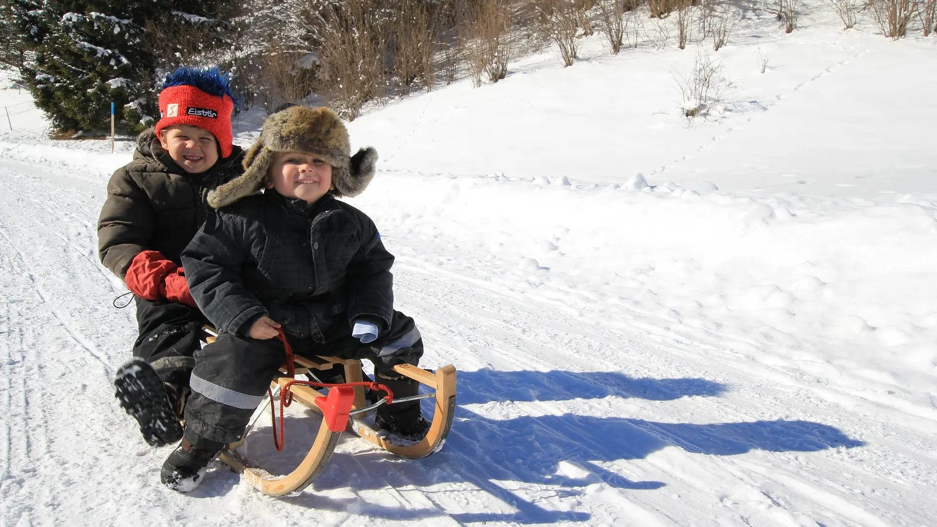 Concerning the sledging area: at the height of winter, it's sunny in the mornings from 9.30am to 11.30am, then in February, the sunny mornings get longer, and in March it's even sunny until the very early afternoon.