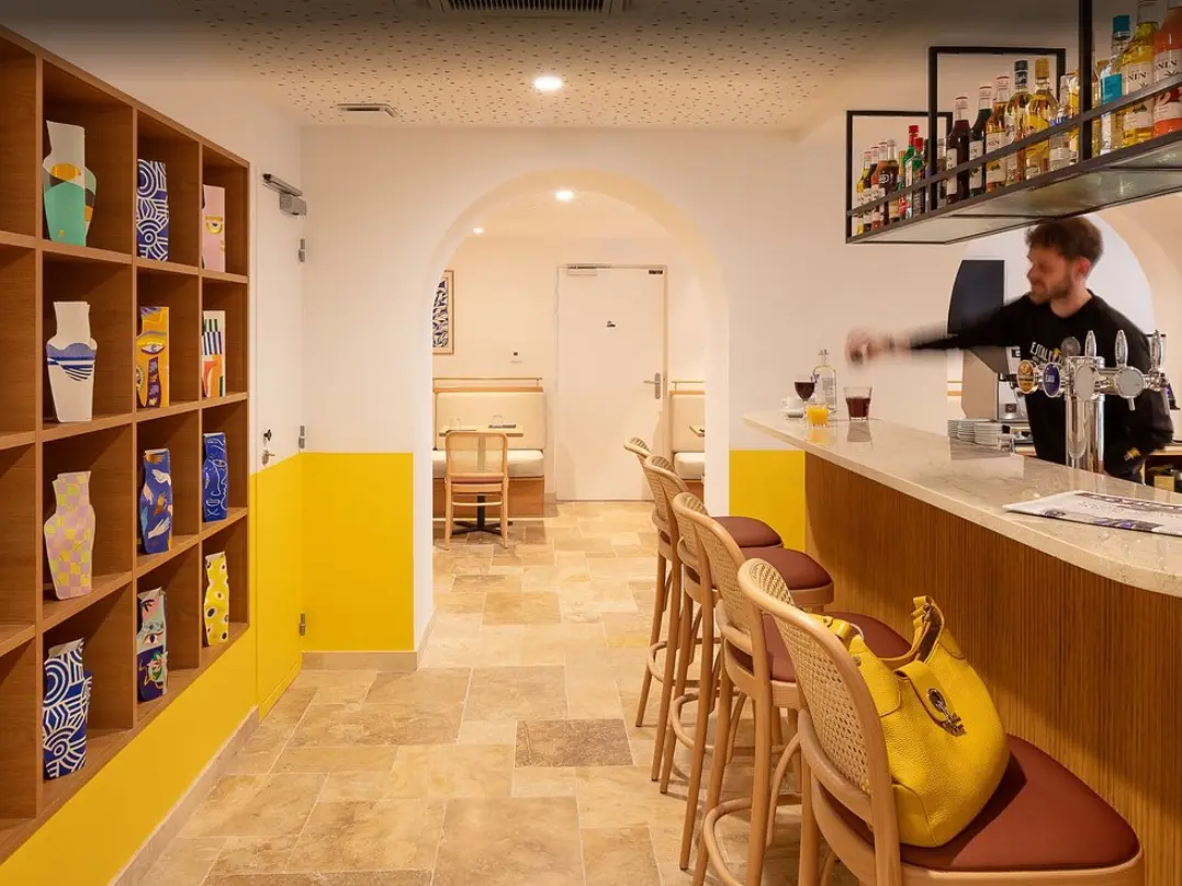 In the midst of works by Aixois artists exhibited in a tasteful decor in the colours of l'Escaletto, discover the wineries of our beautiful region through the experience of our teams, great creations proposed each week by our barman but also classics such as the St Germain Spritz, delicious local beers and softs with notably excellent organic and local juices!