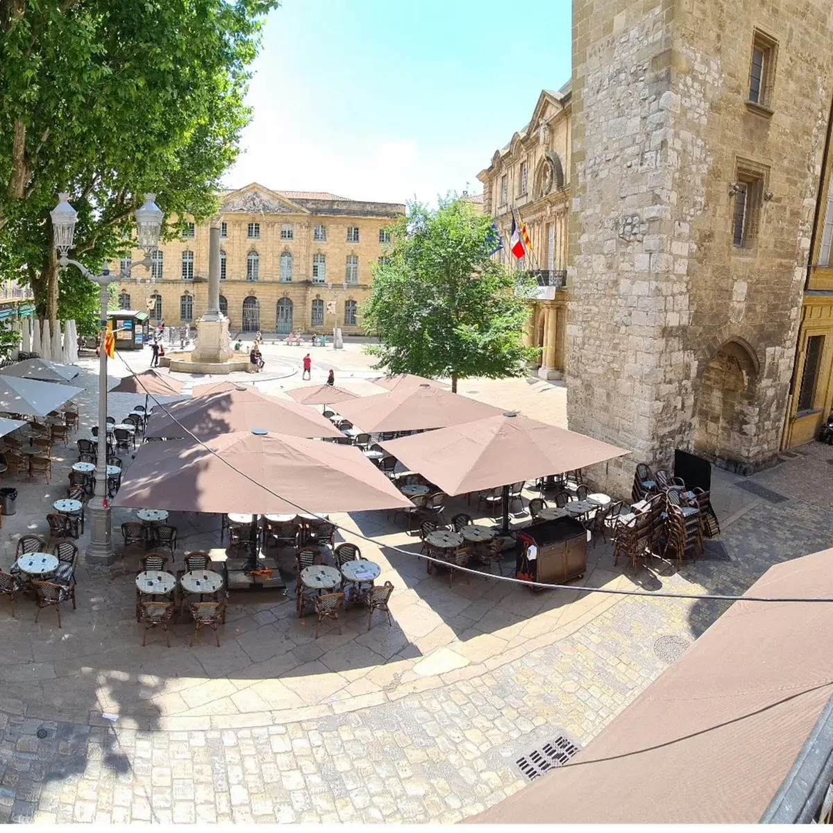 Brasserie de la Mairie has a unique location: from your armchair on the terrace, on the square with its beautiful fountain, at the foot of the Belfry, the city's emblematic monument, you're at the center of Aix's activity!