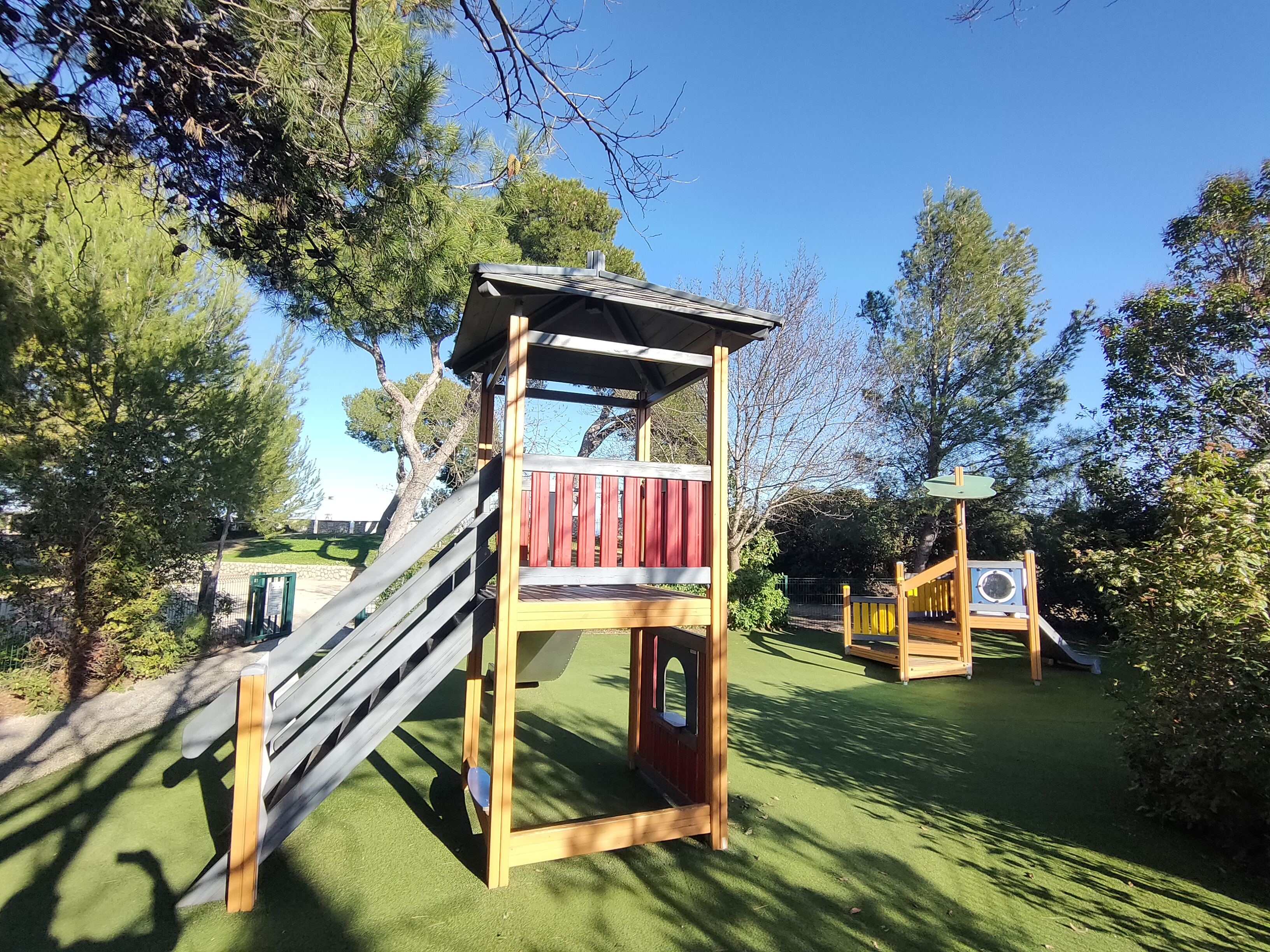 Completely renewed in 2014, the esplanade of the former Castle offers a place of greenery to relax, beautiful views of the village (orientation table) as well as a place to picnic and a play park for children.