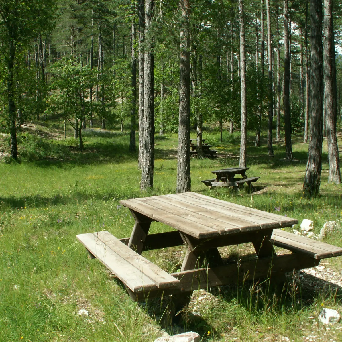 5km from the village center, a well-shaded table next to the Verdre spring and a few meters further on, a lovely area with 4 tables, ideal for groups.