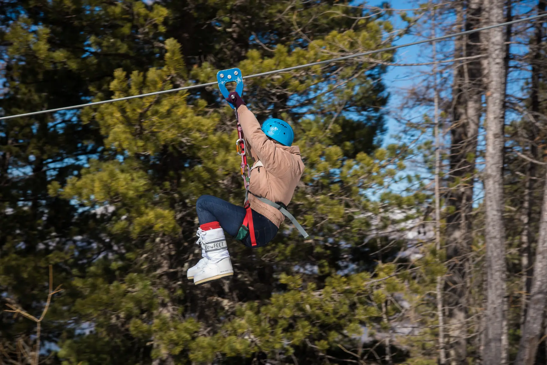 In winter as in summer, fly over the ski area with our GIANT ZIP LINE.