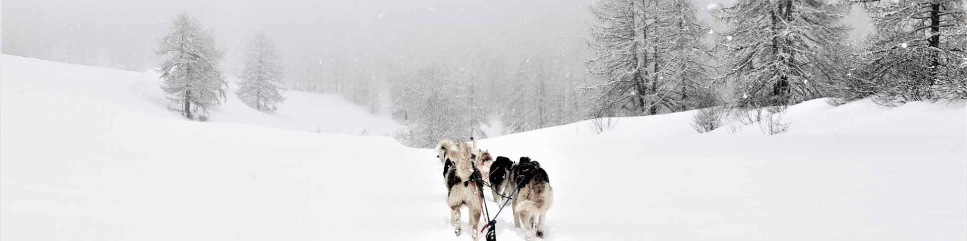 Our rendezvous was scheduled for 9 a.m. on site. We arrived a bit late, after a beautiful, and exhausting, ten-minute walk in the fresh snow. From afar, we spotted the dogs – all attached except for one. This was Peuf, a little husky that was too young to be part of the team. She ran over to greet us and, when she got to our feet, demanded we pet her. Even a tough guy would have cracked. Then, we said hello to Morgan, a passionate musher from Blois who immediately made us welcome. He explained to us that the snow had been falling continuously since the day before, so he had changed the programme a bit. Our outing would be shorter than planned and we would not be climbing to the heights of the resort. No problem – we were already happy to be there.