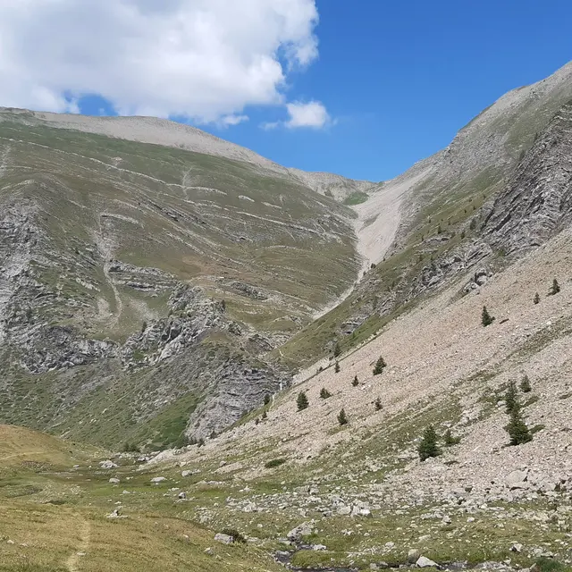 The climb starts in a forest alongside a stream that provides a welcome dose of coolness in summer, and then continues through a mountain pasture landscape that becomes more and more rocky as you progress towards the pass. This austere character nevertheless lends the site a wild charm that needs time to appreciate.