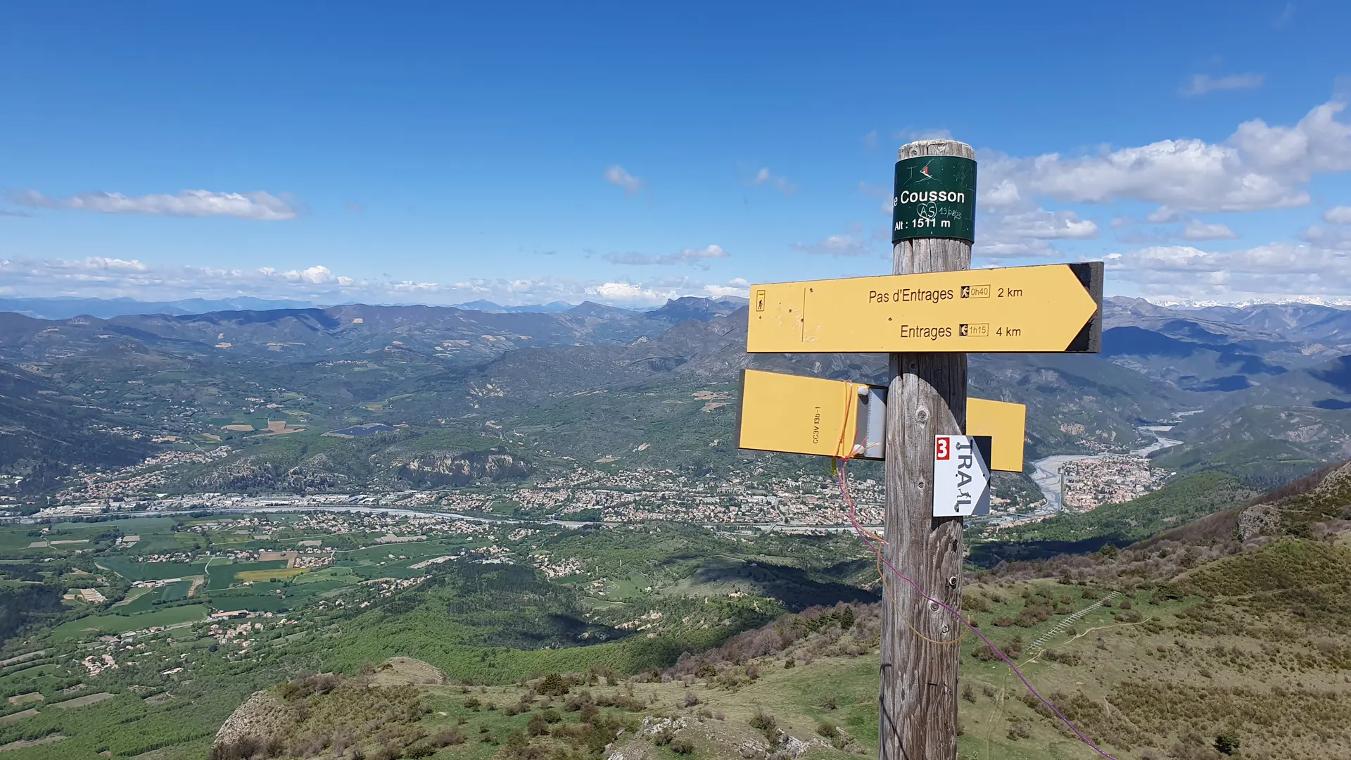 Shorter route from the village of Entrages (4h30, 12km and 500m of elevation gain). From the village square of Entrages, 6km from Digne les Bains, take a mule track to reach the Pas d'Entrages, then a path to the Hautes Bâties du Cousson (ruins of the old hamlet). There, you climb to the two peaks of the Cousson by crossing a refreshing beech forest. After passing near the Saint Michel chapel, the path zigzags along the side then along the ridge to find the Pas d'Entrages