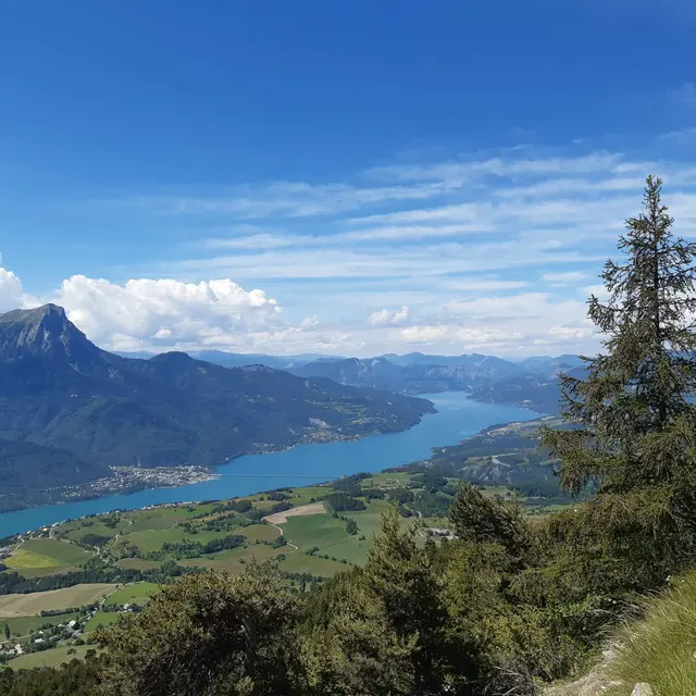A wooded route that stretches along the slopes of Mont Guillaume, offering splendid views over Lac de Serre-Ponçon. Wide tracks conducive to high speeds give way to narrow paths that seem to spring up in front of you, to lead you into the lost heart of the forest.