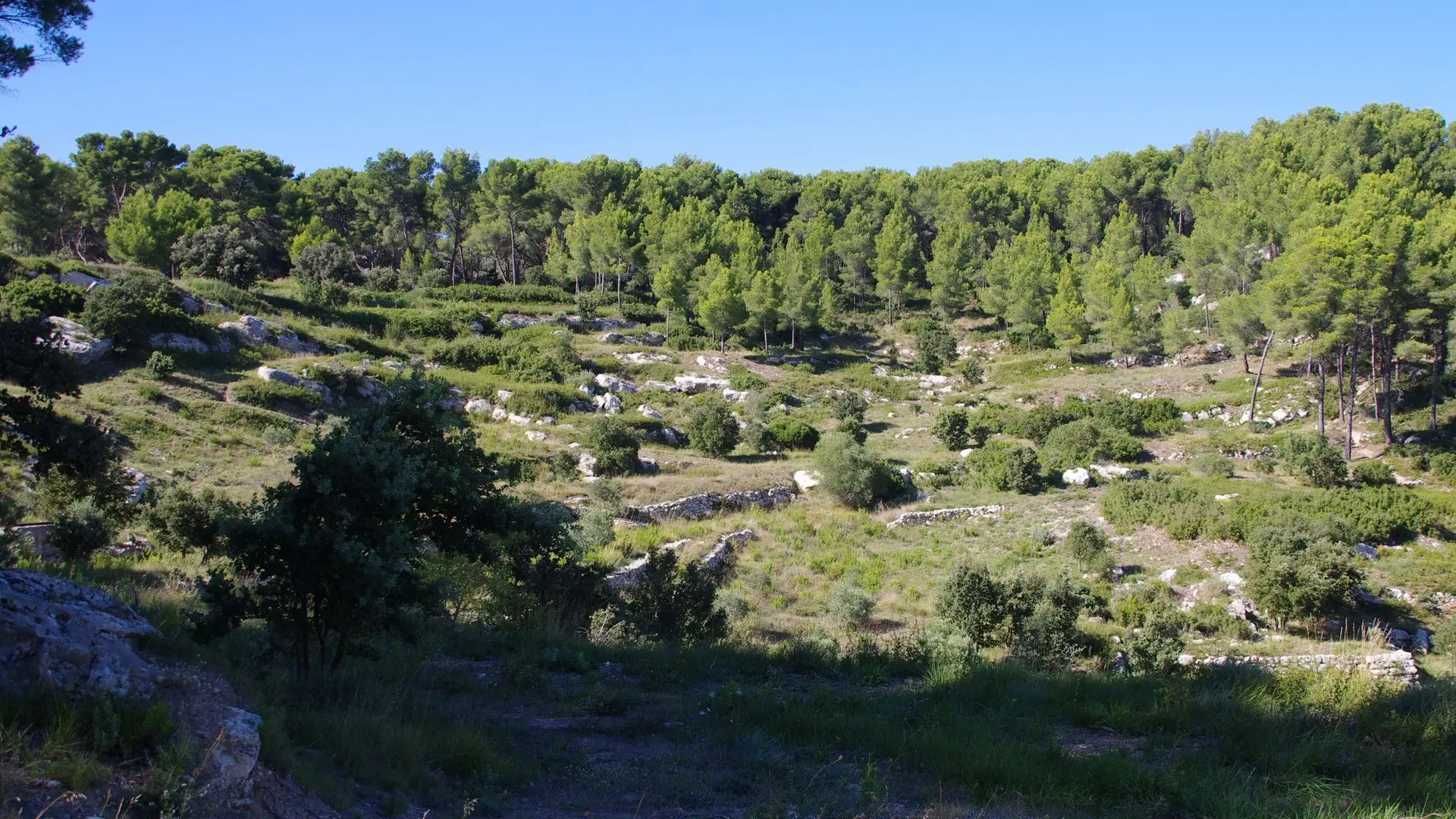 This walk offers beautiful views over the ponds. The path first crosses young Aleppo pines, the result of natural regeneration following the fire of summer 2000.
