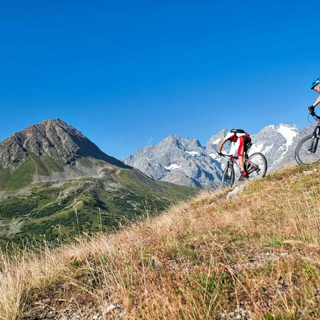 Depuis le col du Lautaret, vous emprunterez le fameux chemin du Roy, dont la première partie en balcon est technique et roulante, la plupart du temps sur sentier en terre. Vous apprécierez une magnifique vue sur la vallée de la Guisane.