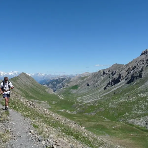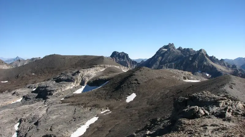 Heading for Col de Vars, climb up to Ste Catherine and continue on a track (approx. 30min) to park at the Les Couniets parking lot. The mountain begins right here under your tires! The hike starts on the bare south-facing slope to reach the Les Couniets ridge. On the other side, it's refreshing to cross the generous greenery of the Vallon de Laugier. It's a pleasure to be flat all the way to the Col de Serenne. Just above, the Lac des neuf couleurs nestles. The glowing rocks, the ice-blue lake, the green of the grasses, the yellow and orange petals of the flowers... it's aptly named! Follow the cairns through the rock shaped by the ancient glacier. At 3169 m, the Mortice summit offers panoramic views of the Queyras, Mont-Viso, the Écrins and the Ubaye with its Aiguilles de Chambeyron. Return by the same route.