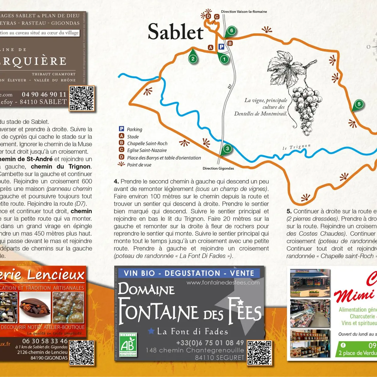 This hike will introduce you to the magnificent terroir of Sablet. Enjoy superb views of the Dentelles Sarrasines, the Saint-Amand ridge, the Pas de l'Aigle and the Rhône valley.