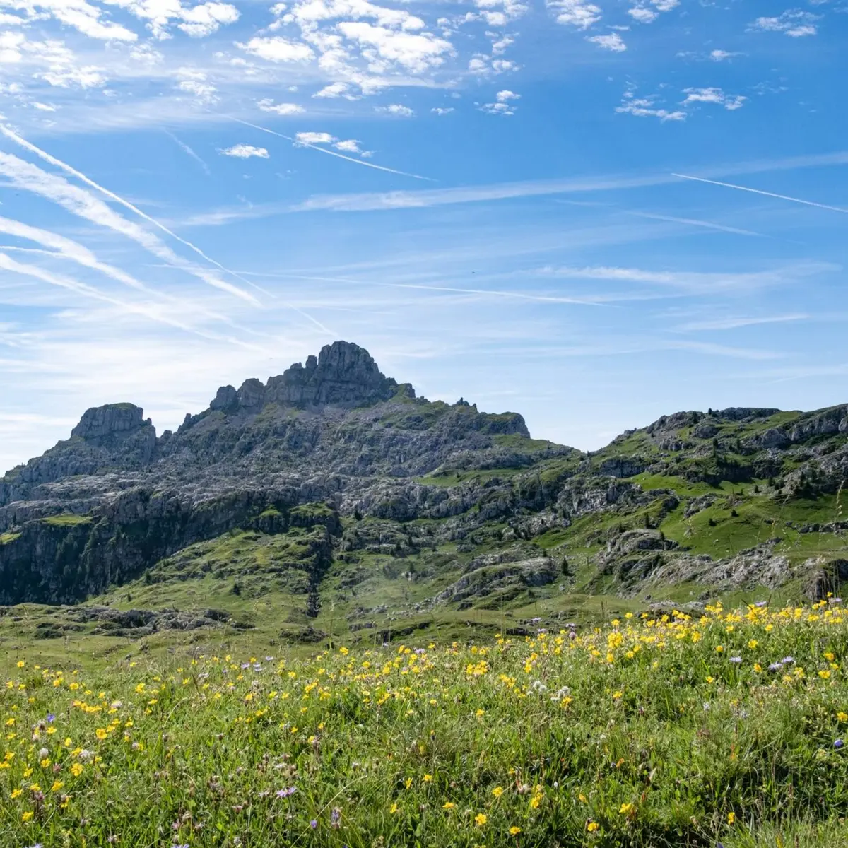 In June, the late névé can sometimes hide the footpath and the signs. A flock is present on the pastures and "Patou" dogs ensure their protection Avoid passing through the flock.