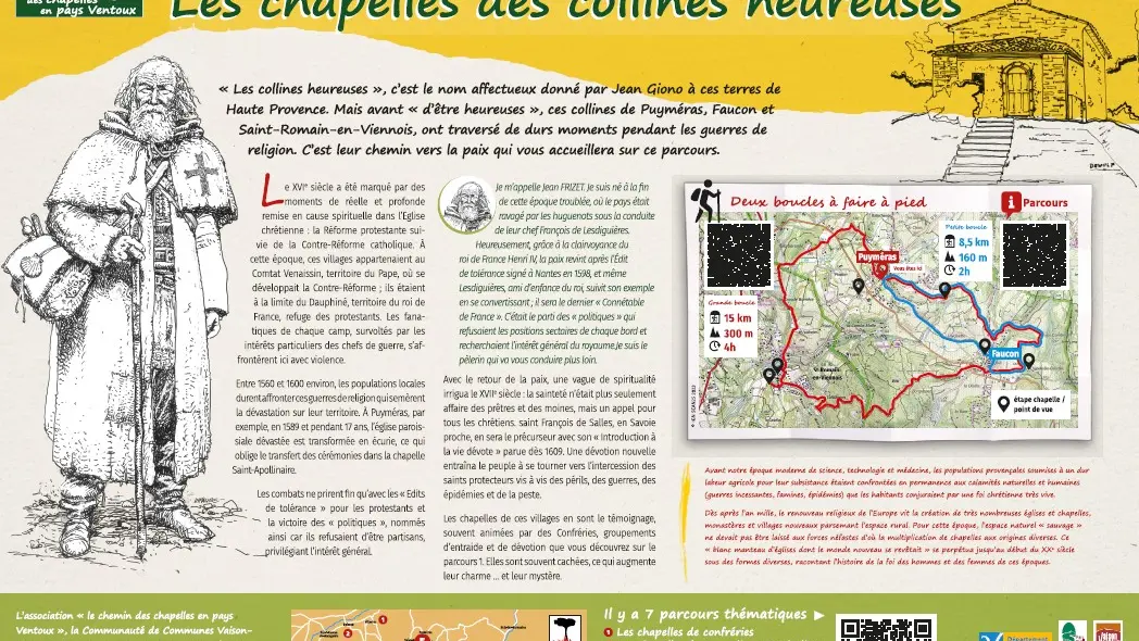 But before "being happy", these hills of Puyméras and Faucon went through hard times during the Wars of Religion. It's their road to peace that welcomes you on this tour.