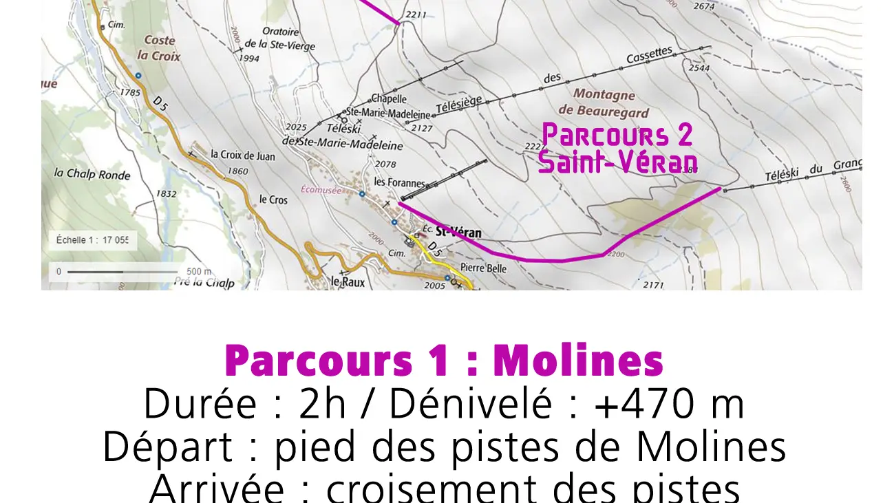 Weather and snow conditions are available on the Météo France website and at the Tourist Offices. The ski touring itineraries will be closed due to avalanche risk level 4 and 5.