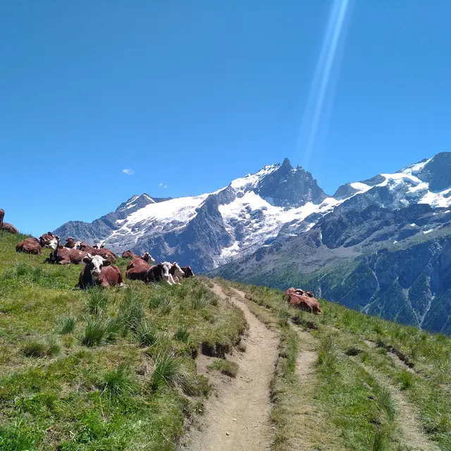 After crossing the ski lift, take a more technical descent to the left to Clot Raffin, then join the Village du Chazelet by a final short climb.