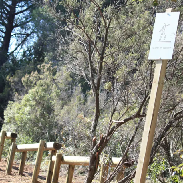Enjoy this trail which is lined by vines and mimosas when they are in season,. It leads you to the "Débarquement beach". Discover the "fitness trail" while proceeding and the ruins of a Roman villa before arriving at the beach to take a break.