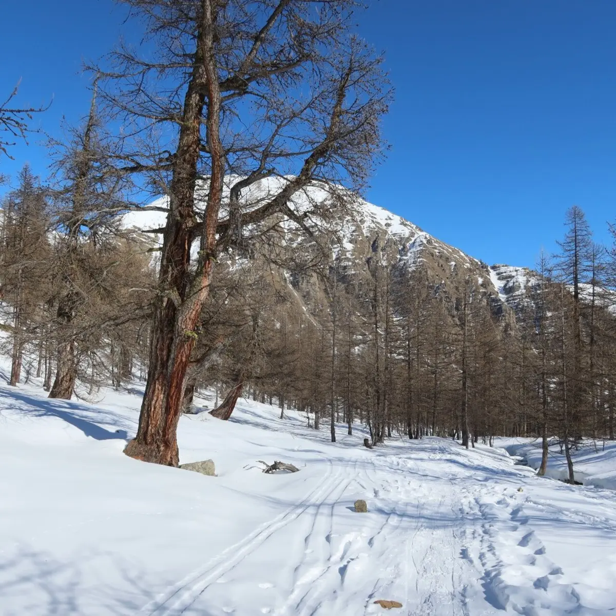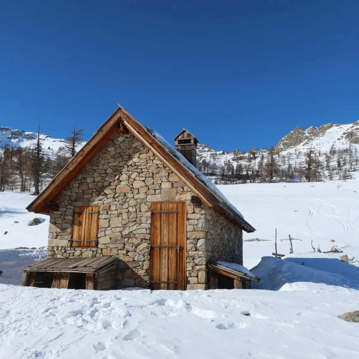 This hike offers a comfortable route in the best snow-covered sector of Haute Tinée with the theme of interest being the centuries-old larch tree of La Braisse and the pastoral hut built in 2001.