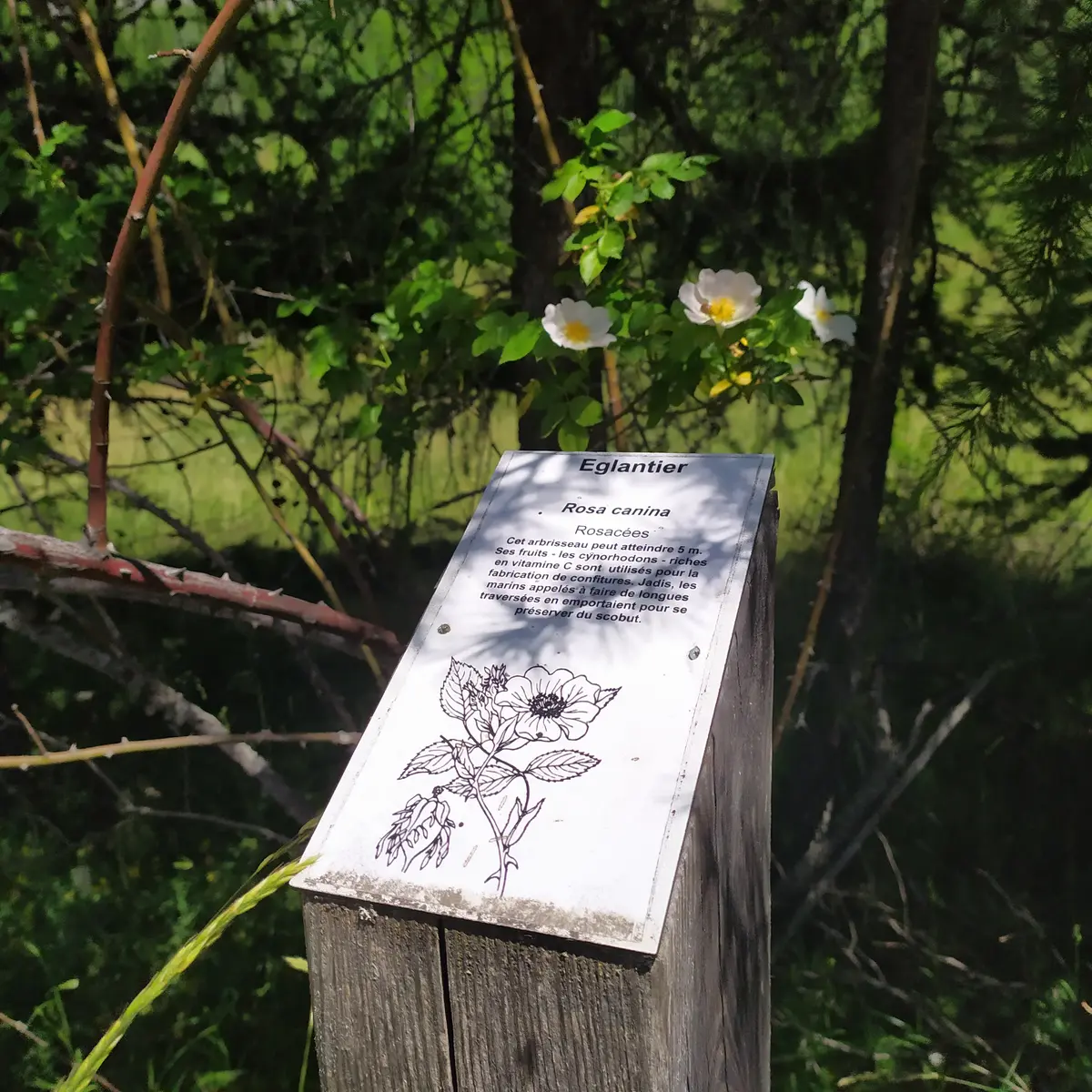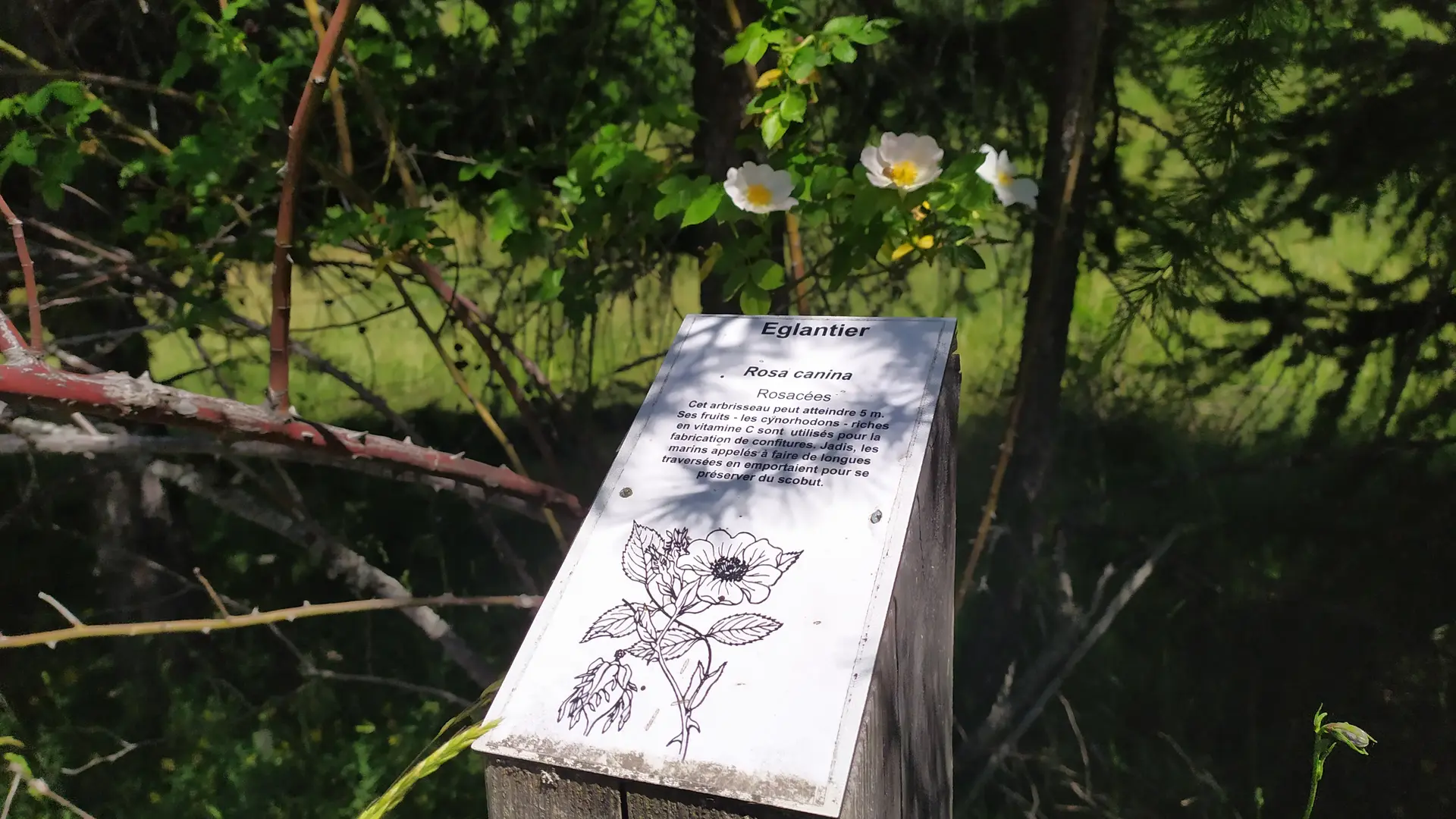 From the Centre Montagne parking lot, the path starts at the bottom of the parking lot on your left and is signposted with wooden "Sentier Botanique" signs.
