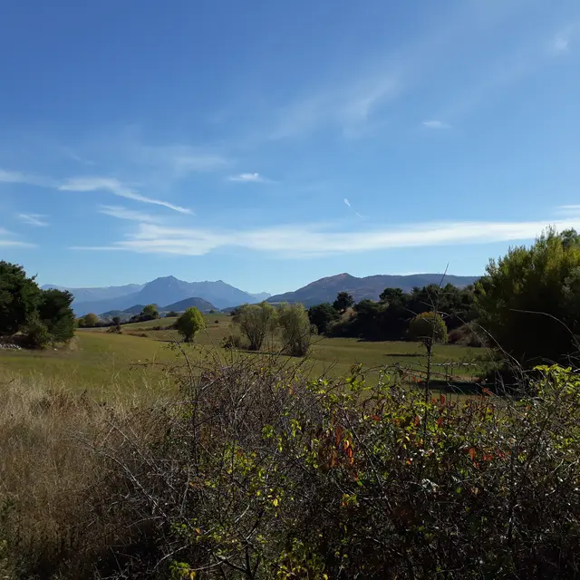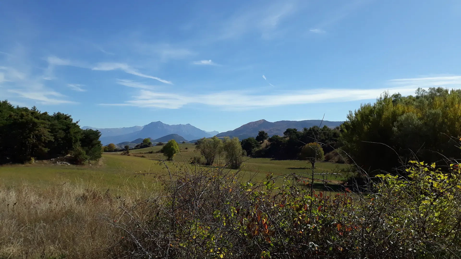 4. Join the main road. Do not cross it, but continue straight on for 200 metres towards Tallard. Leave the tarmac road to take a track that runs due east on the left, alongside a hedge. Follow this track across the fields until you cross the main road via the tunnel. Follow the road in the opposite direction for 400 metres to cross the railway line. Finally, enter the village of La Bâtie-Neuve and return to the starting point, on the left opposite the school.