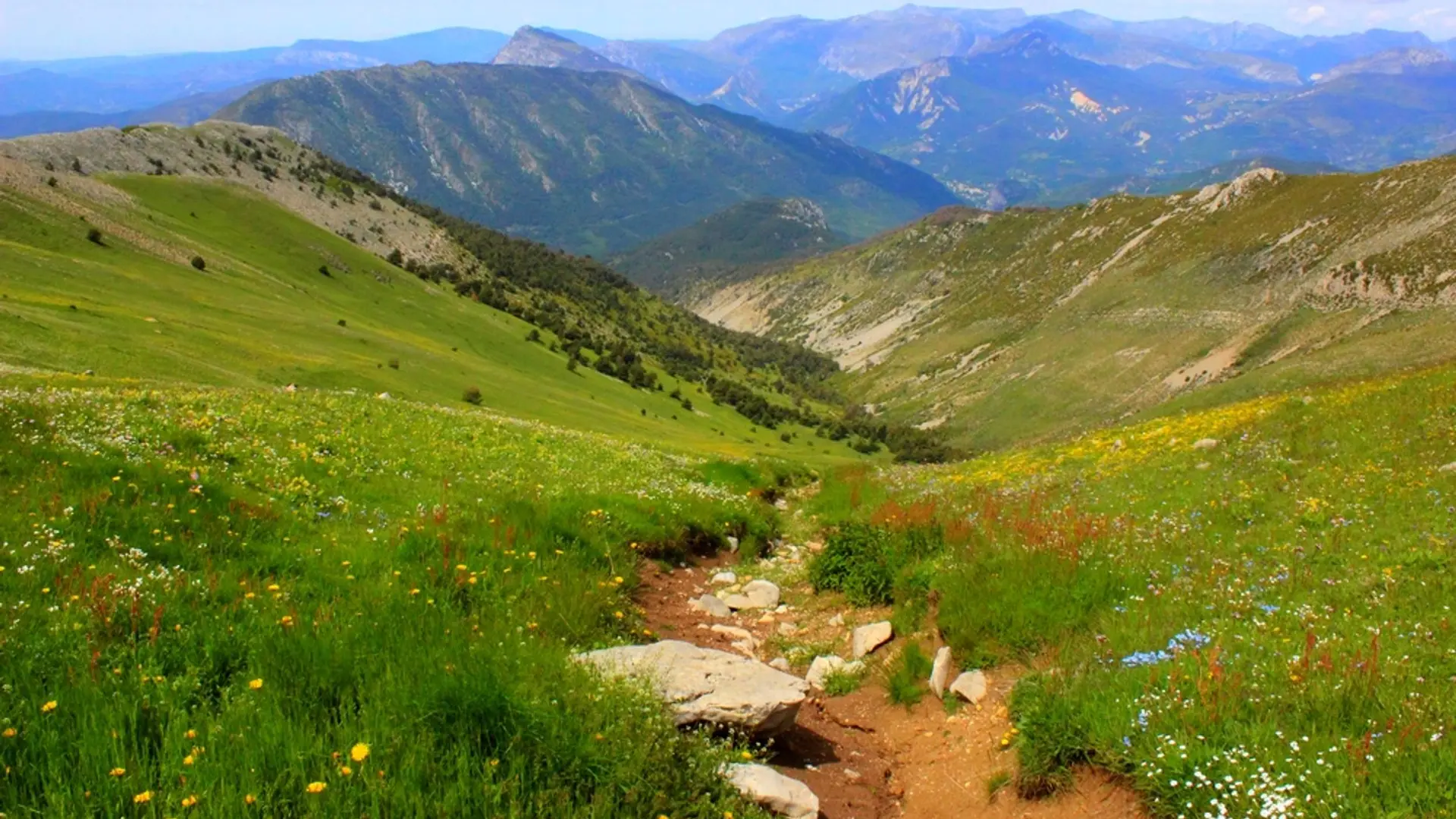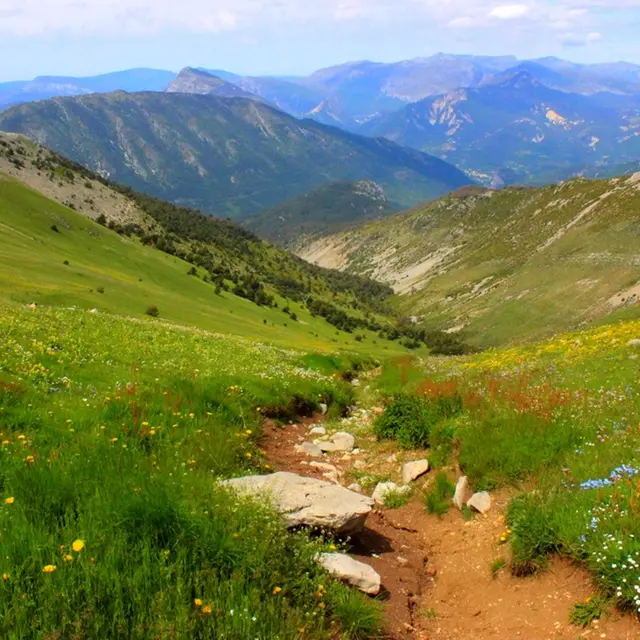 After a long verdant valley, climb the final alpine pasture. In the spring it is an enchantment of flowers dotting the mountain.