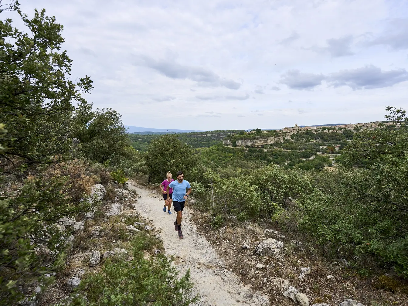 Very easy to run on, with no particular difficulties. A slightly steep climb at the start of the course (400m), but located in a magnificent calade, allowing you to discover this local speciality, as well as a short but steep climb at km 10, located at the level of the famous Venasque climbing routes. Then an alternation of ascents and descents to reach the high point of the route at the Combe du Diable, via the Notre de Dame de Vie priory, the Nesque river bed (beware of the many pebbles) and various singles.