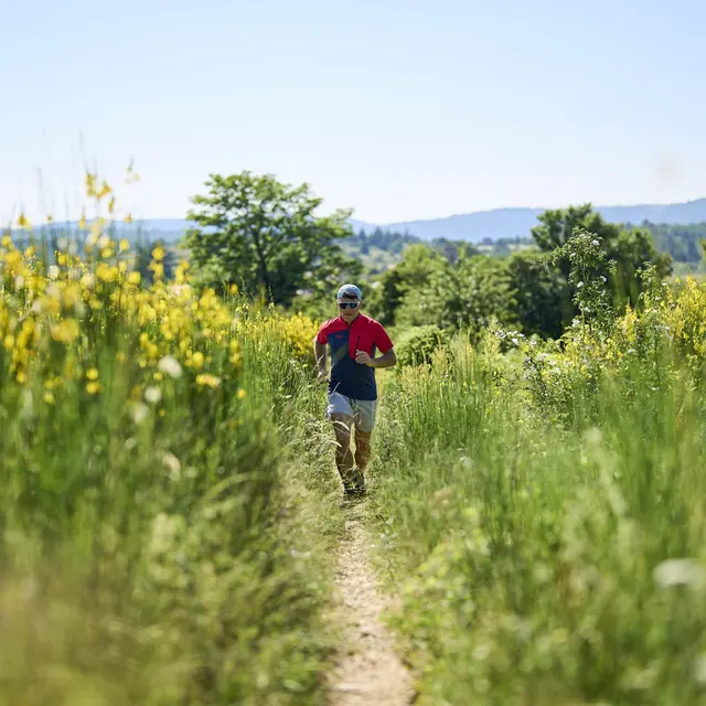 Magnificent views of Mont Ventoux from the St-Jean belvedere. Rolling course on white paths. Three beautiful climbs and a fairly technical descent on the 21km program! Take this route in season when the lavender is in bloom, it offers amazing views with Mont Ventoux in the background. Running in the middle of such a landscape is magical!
