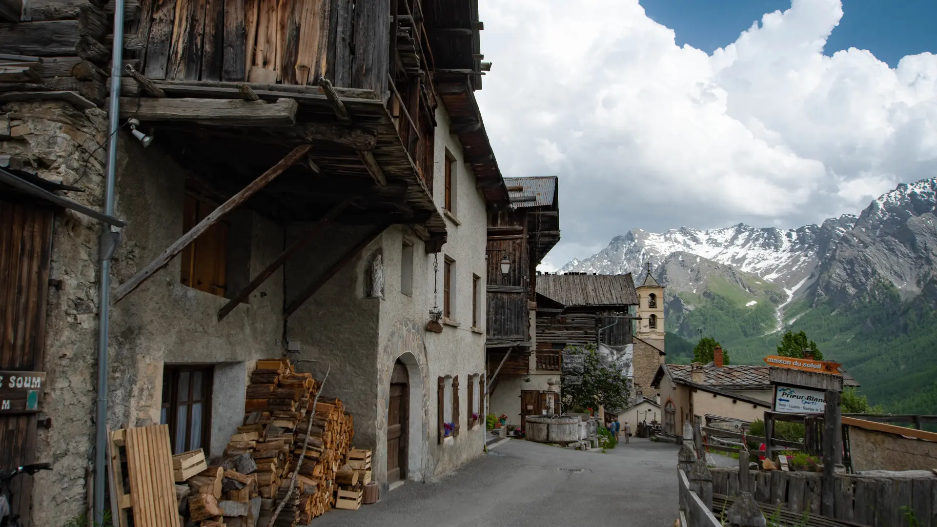 From La Chalp, my first stop is Europe's highest perched village, Saint-Véran. And its altitude is unequivocal: 2,050 meters for a place inhabited all year round. And it's higher than most ski resorts, built for leisure. Here in Saint-Véran, people have been living here for centuries, working in the meadows all summer or huddling together in the bitter cold in winter.