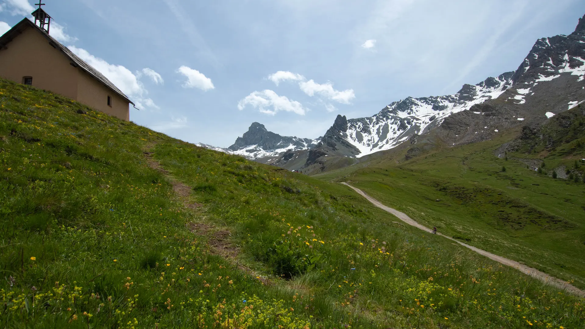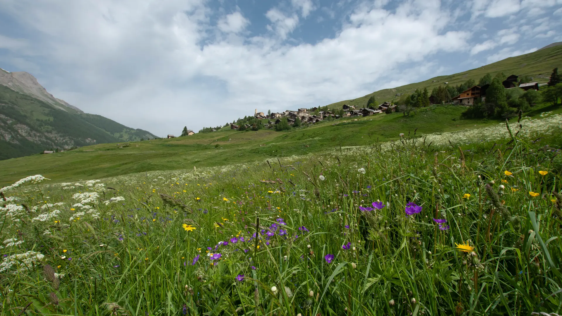 At the entrance to Saint-Véran, I join the hay meadows at the bottom of the Aigue Blanche valley. The path, studded with thousands of flowers in June or blazing with autumn colors in October, is magnificent.