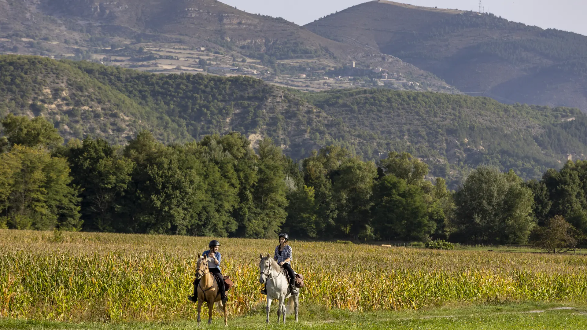Starting from Digne, at the exit of the town at the Rugby stadium, you will wind through the Bléone valley on the Route Napoléon. The route, labeled Grand Itinéraire Équestre (Grand Equestrian Route), offers several climbs and descents, including the one leading you to the superb Gaubert viewpoint, which then descends to the other side where you will cross a footbridge at the foot of the hill. Another climb at the village of Mallemoisson, then descent into the plain where you will cross the Duyes river. You will then cross the hamlet of Lutins to arrive at the Château de Fontenelle and the village of Mirabeau where the cottage and paddock for the horses are located (100m away).