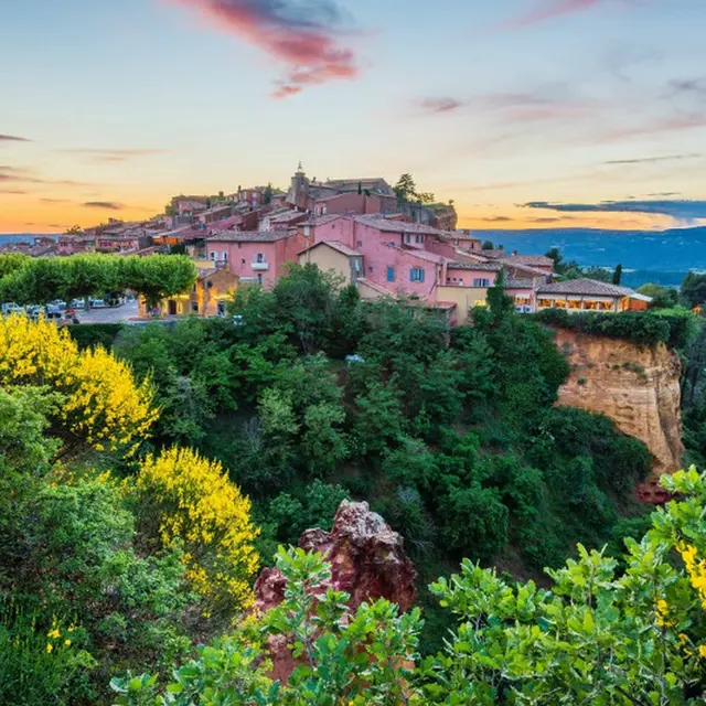 ● Discover the village of Roussillon and its colourful houses (market on Thursdays). Marvel at its facades, which blend harmoniously with the ochre cliffs above. Immerse yourself in a world of vibrant colours: different shades of ochre will enhance your souvenir photos of your trip to Provence. You will also have the opportunity to visit the village on other days.