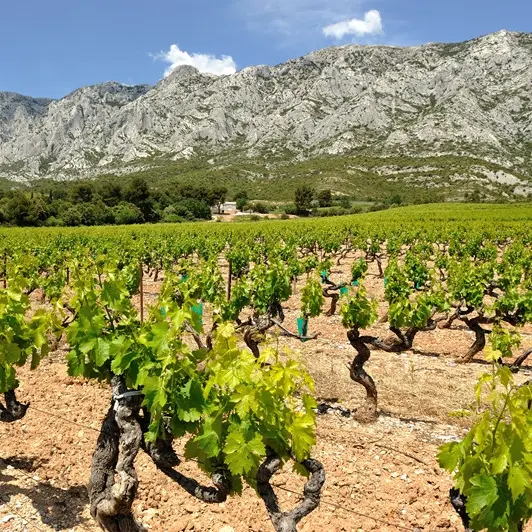 Discover the beautiful Côtes de Provence Sainte-Victoire wine region. At the foothills of the famous Sainte-Victoire, surrounded by vines for as far as the eye can see, visit 2 family-owned wineries: tour the vat and aging rooms, learn about the wine making process explanation, from the vine to the bottle. Conclude with tastings of fruity & dry rosés, delicate and aromatic whites and full-bodied reds. Guided visit of 2 wineries and tasting of 9 different wines with a Provence wine expert. (tasting fees included)