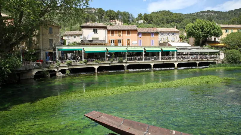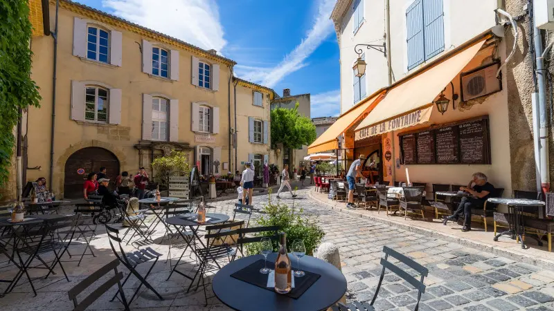 Explore the source of the Sorgue river in Fontaine-de-Vaucluse. In Gordes, photo stop of the clifftop medieval village and its amazing views + free time in the village every Tuesday.