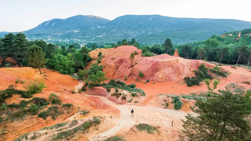 Visit Roussillon, known for its orange and red rocks, colorful houses, studios, galleries and stunning views of the countryside.