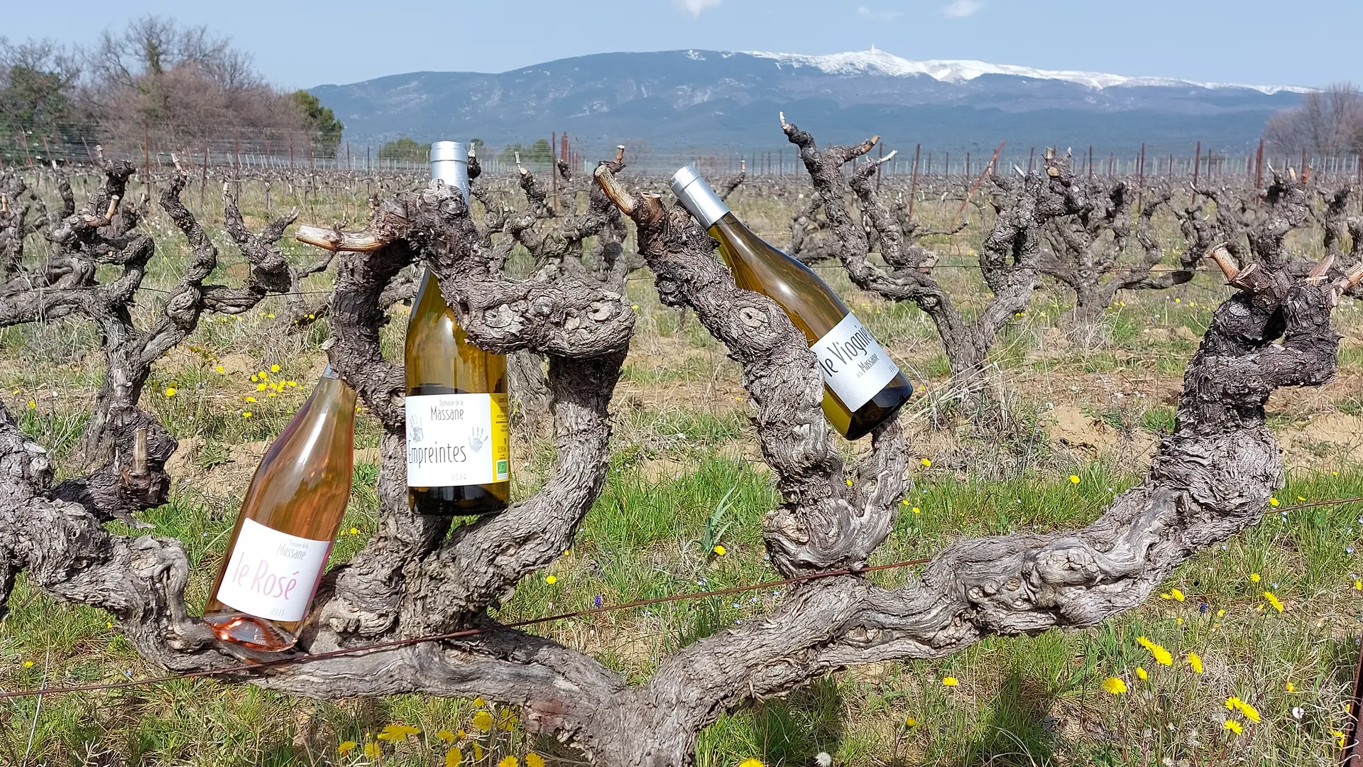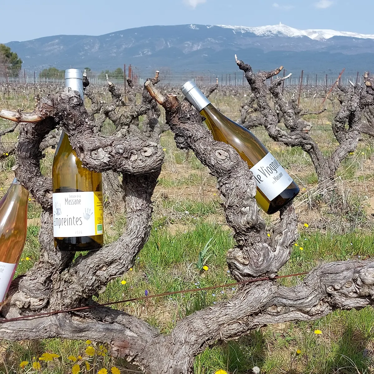 Our organically farmed 18 ha vineyard is located on the southern slopes of Mont Ventoux, at an altitude of between 300 and 400 m. We vinify the grapes from different terroirs separately to produce a range of red, white and rosé wines.