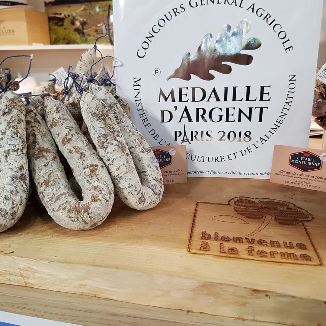 Free-range pig farmer, awarded a bronze medal at the Salon de l'Agriculture in Paris for his farmhouse sausage and a silver medal for his dry sausage.