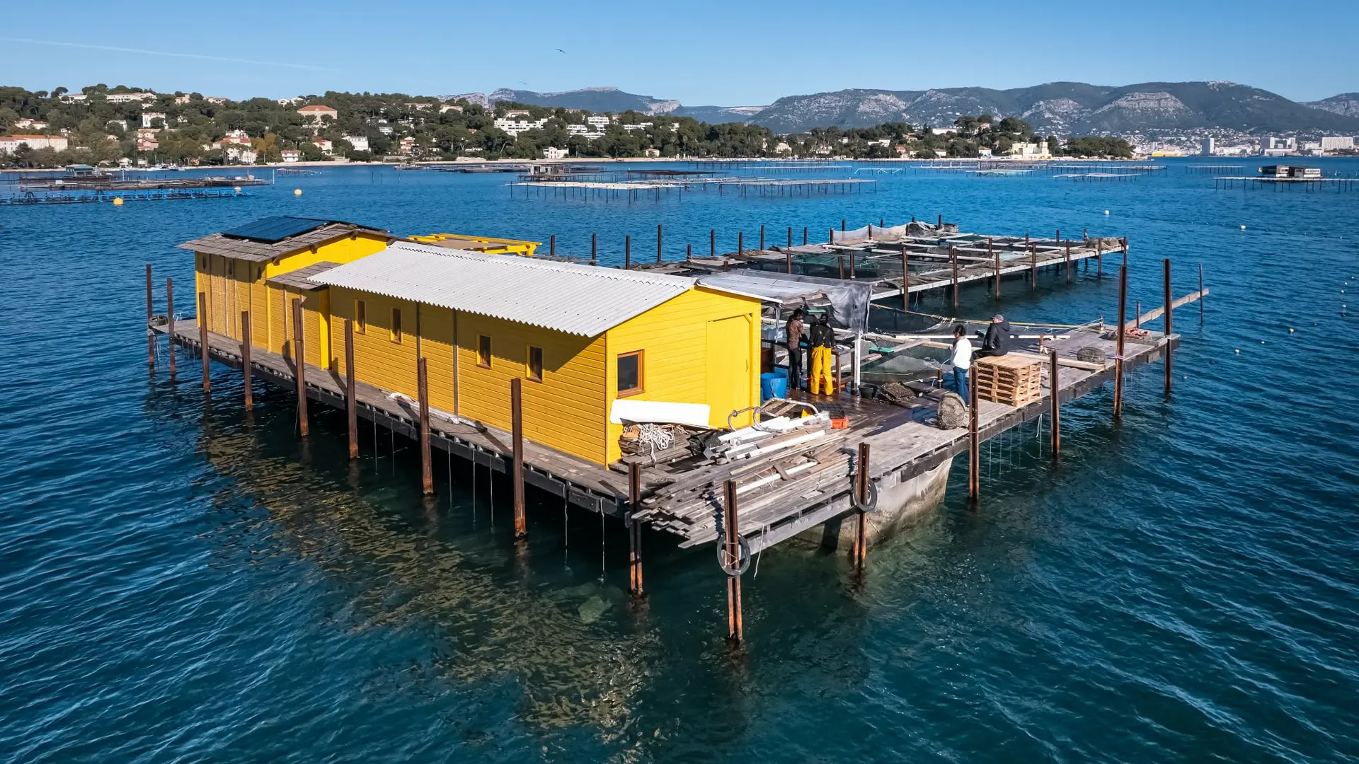 Located in the heart of Tamaris Bay, in La Seyne-sur-Mer on the Var coast, Les Loups d'Or is an artisanal aquaculture farm founded by Jérémy Vantouroux. Born of a deep passion for the sea and marine ecosystems, the farm raises top-quality fish in a naturally preserved environment.