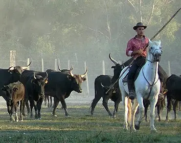 Authentic 250-hectare Camargue agricultural operation for the breeding of Camargue horses and bulls and the traditional cultivation of rice and durum wheat. Come and discover our life, our traditions and our wonderful landscapes and stay in the peace and comfort of one of the oldest Mas in Camargue. Direct sale of bulls' meat.