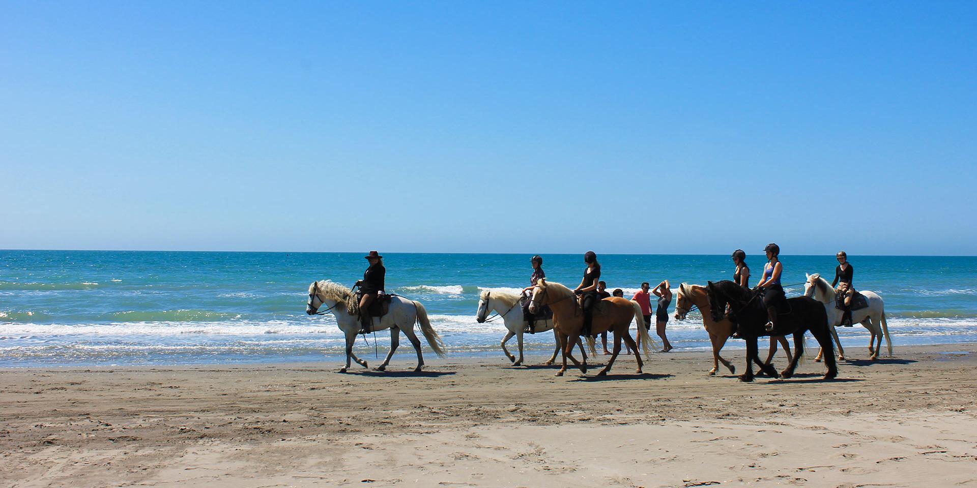 Planté sur le delta du Rhône, entre plages et lagunes, le Parc naturel régional de Camargue demeure un haut lieu de tradition équestre. Les chevaux de race, à robe blanche, y sont élevés en semi-liberté dans des manades par les gardians. Vous pourrez notamment découvrir l’espace naturel protégé de la réserve naturelle des Marais du Vigueirat, ses élevages taurins et plus de 300 espèces d’oiseaux. Au cœur de la Camargue, Les Saintes-Maries-de-la-Mer constituent un point de départ idéal pour une escapade à cheval… ou en calèche. Rendez-vous par exemple au centre équestre Les Arnelles.