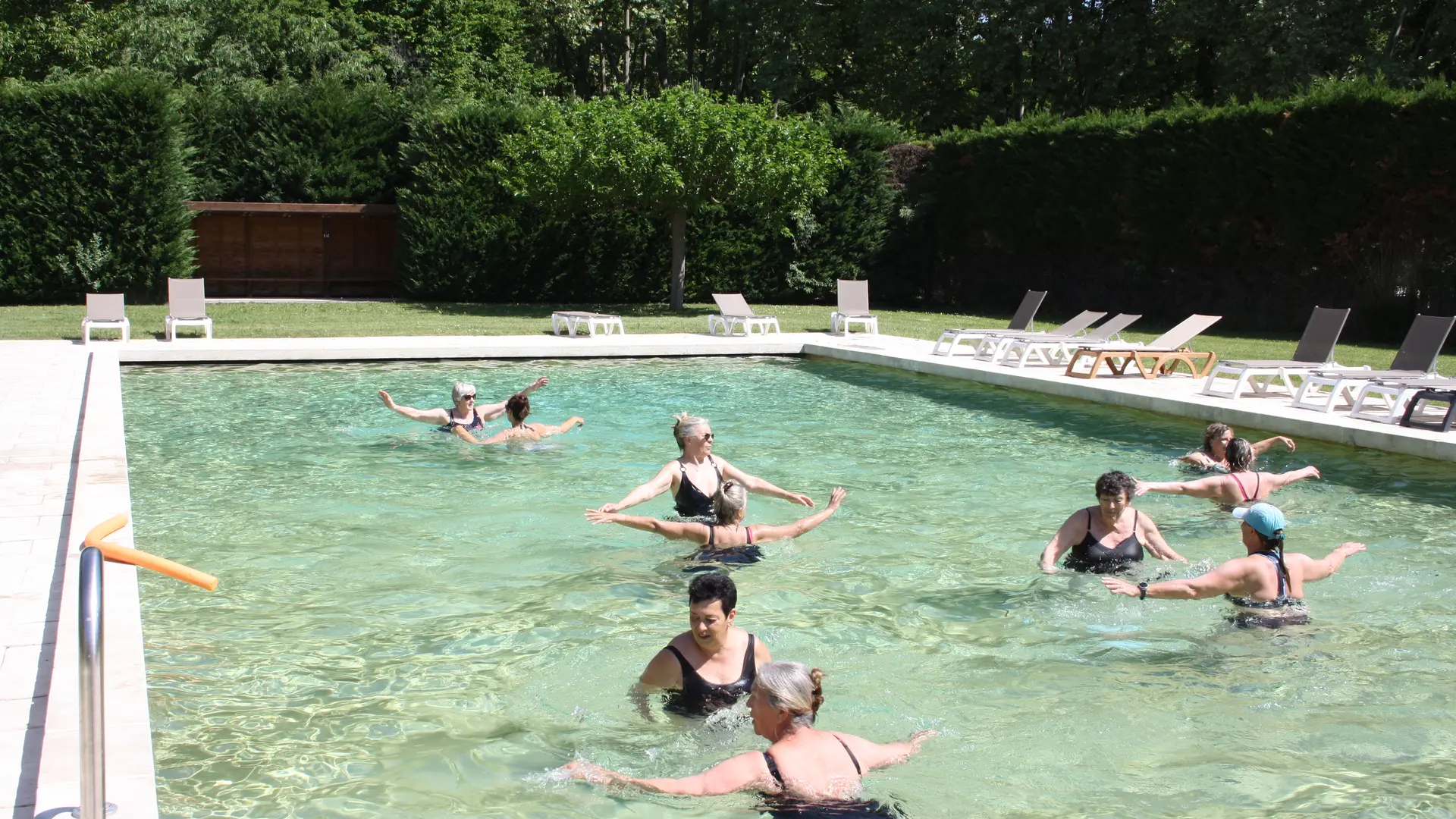 • Des cours d'aquagym : durée de la séance 1 heure, où nous allons travailler différentes parties du corps, en étant porté par l'eau, donc pas de choc avec le sol, vous allez pouvoir vous tonifier musculairement, augmenter votre endurance, travailler la souplesse, pour retrouver détente et bien-être !