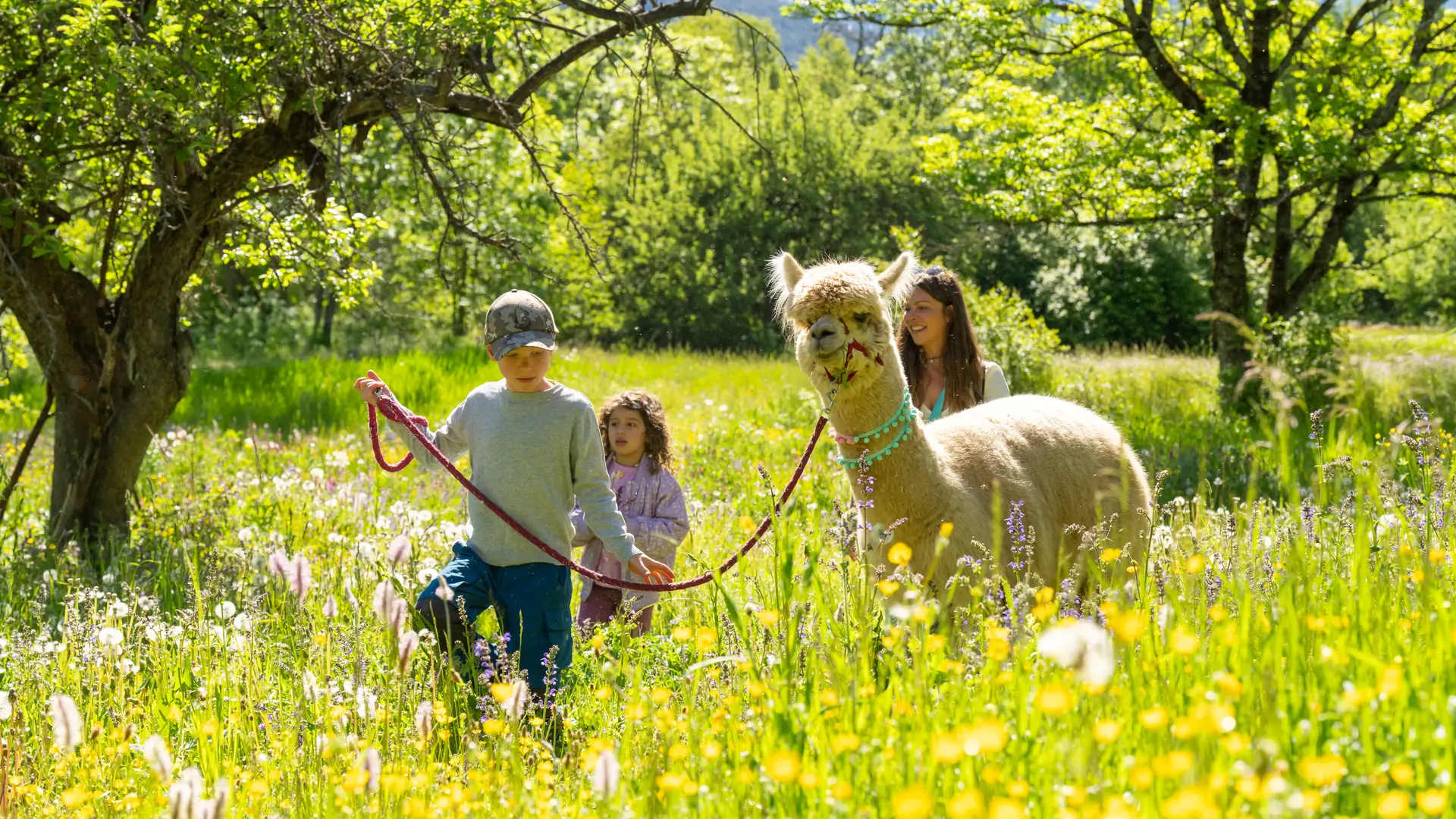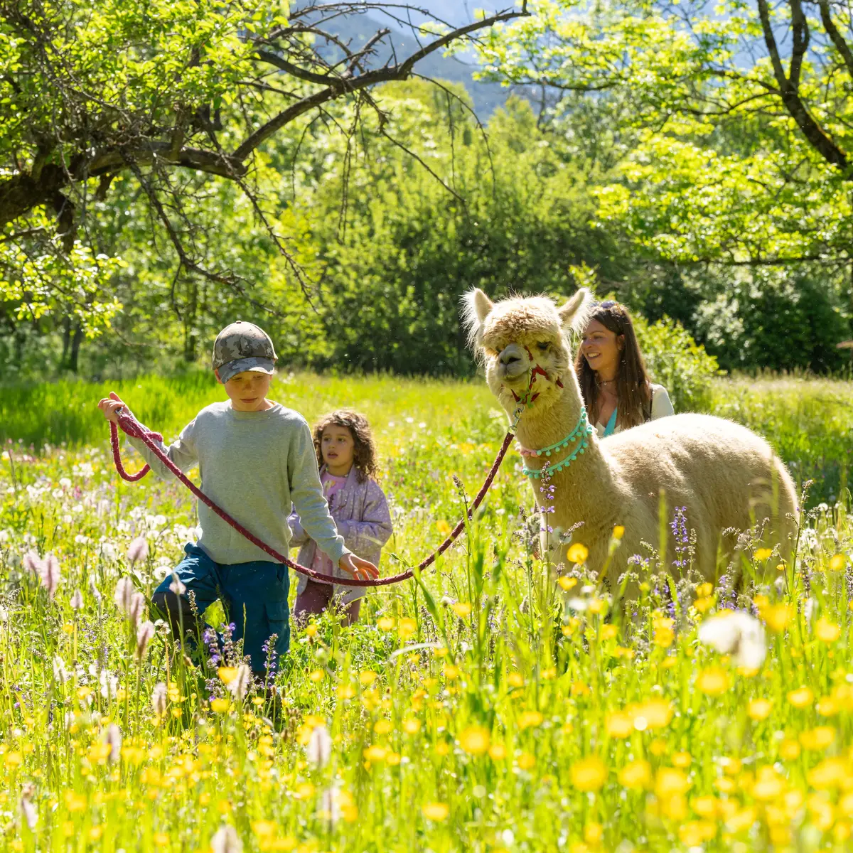 Au cours d'une balade avec les alpagas dans notre splendide vallée de la Vallouise nous nous installerons pour un délicieux pique-nique local fait maison en pleine nature (inclus dans le tarif). Les enfants créeront un alpaga décoratif à emporter chez vous. En bord de rivière, vous pourrez barboter avec les alpagas qui adorent l’eau.