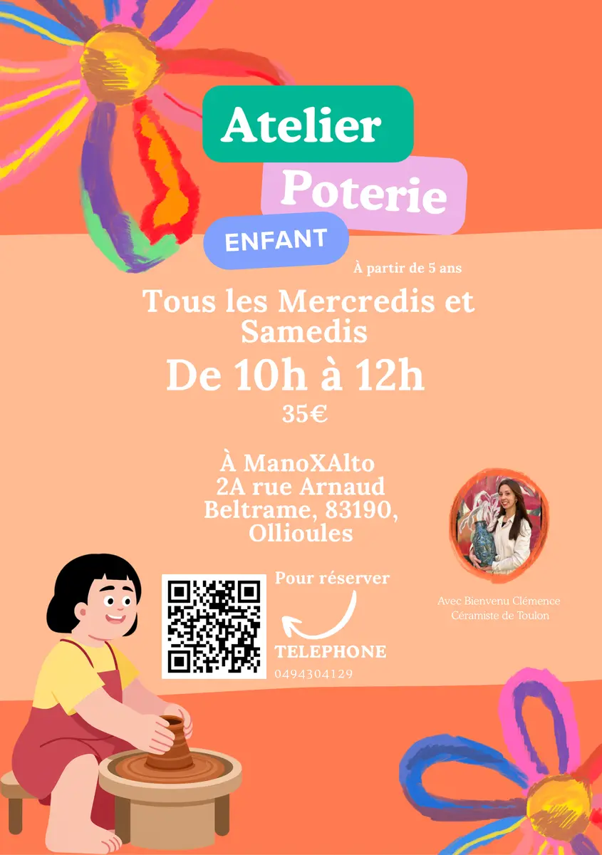 Nous vous invitons à découvrir nos ateliers destinés aux enfants, conçus pour éveiller leur créativité et leur permettre d'explorer diverses techniques artistiques dans un cadre inspirant avec une initiation au modelage et à la peinture.
