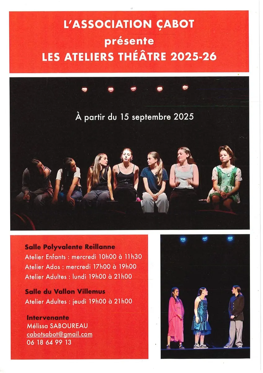 L'association ÇABOT vous propose différents Ateliers Théâtre pour tous les âges.
