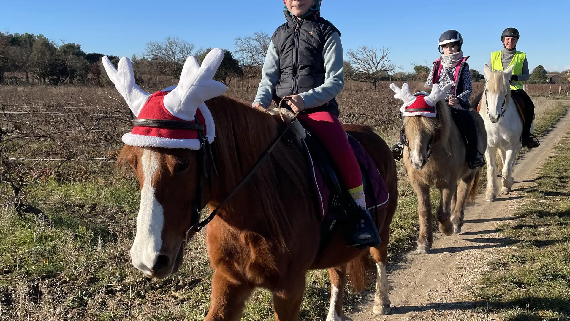 Parmi les nombreuses activités proposées par les Écuries de Mazan, vous pourrez partir à la découverte de la campagne environnante, entre vigne et Mont Ventoux, grâce à des balades familiales accompagnées à cheval ou à poney pour toute la famille.